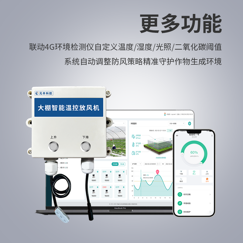 智能放風機控制器是用于農業(yè)大棚生產場景,滿足大棚生產過程中對卷膜器的控制,根據大棚內作物不同,依據大棚內環(huán)境溫度、環(huán)境濕度的變化控制卷膜器的風口的大小,使大棚溫濕度環(huán)境達到作物適宜的生長環(huán)境;